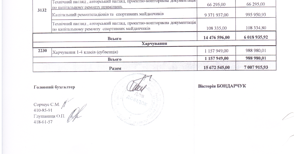 Інформація щодо придбаних товарів, виконаних робіт за рахунок загального фонду бюджету