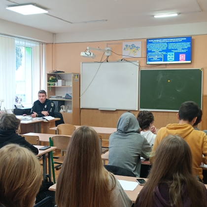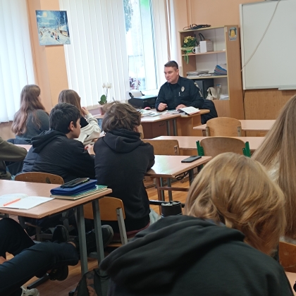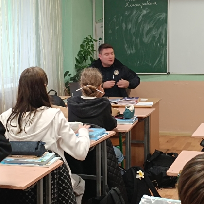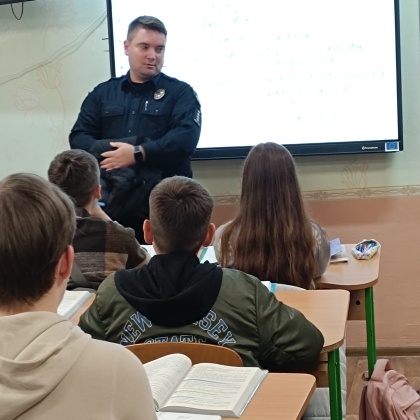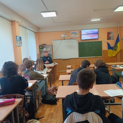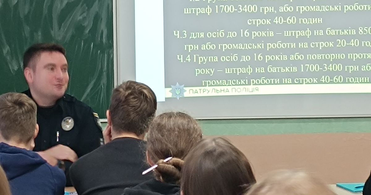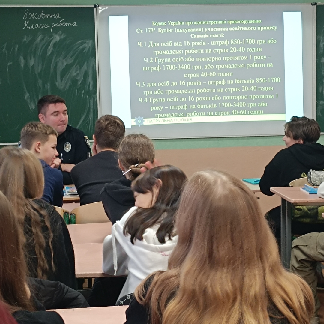 🗓️ До учнів 8-9 - х класів завітав шкільний офіцер поліції капітан Олександр Биковець з годиною спілкування щодо обов'язків учнів, їх прав та відповідальності неповнолітніх у разі вчинення правопорушень