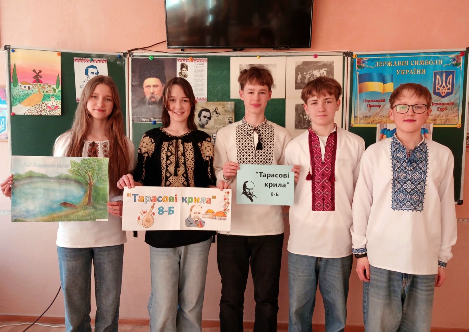 💛🩵Березень в Україні часто називають Шевченковим. І це невипадково: щороку навесні Великий Кобзар приходить до нас, і щороку - новим, неповторним.🩵💛 Тарас Григорович Шевченко - велика й невмируща слава українського народу 🇺🇦🇺🇦 Сьогодні, 9 березня, до 212-ої річниці з Дня народження нашого Пророка між командами 8-А ("Нащадки Кобзаря"), 8-Б ("Тарасові крила") та 8-В ("Гайдамаки") класів учителькою літератури Людмилою Володимирівною Вербило було проведено інтелектуальну гру-змагання "Стежками Кобзаря". 📚📜Діти згадували сторінки складного життя та розмаїття творчості Тараса Шевченка, декламували поезії напам'ять, брали участь у творчих конкурсах. Усі гідно пройшли непрості випробування, а перемогу здобула команда 8-В класу - "Гайдамаки"! Вітаємо!👏🥇🏆 Дякуємо всім присутнім на заході шанувальникам багатогранної творчості Тараса Григоровича Шевченка.🫶🌷 Особлива подяка неупередженому журі в складі учениць 10-А класу - Бруй Євгенії та Чубукчі Агати! ❤️